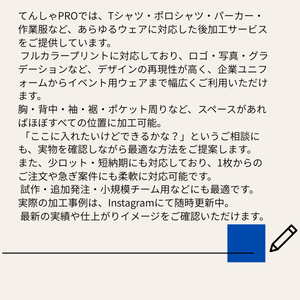 てんしゃPROは、企業ブランディングやユニフォーム制作に強みを持つオリジナルプリントサービスです。