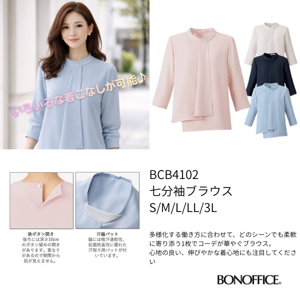 BCB4102 七分袖ブラウス