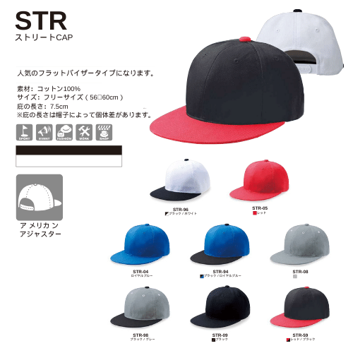 綿100%のフラットバイザーキャップです。