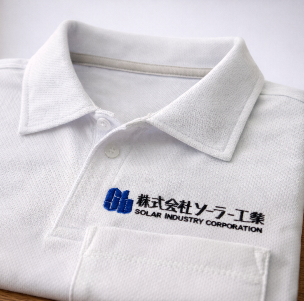 プリント加工より耐久性もあり、糸の光沢によって見た目も華やかになります。10色までのカラーも一気に刺繍します。