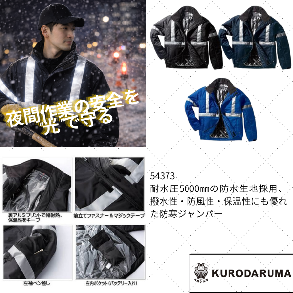 耐水圧5000㎜の防水生地採用、撥水性・防風性・保温性にも優れた防寒ジャンパー