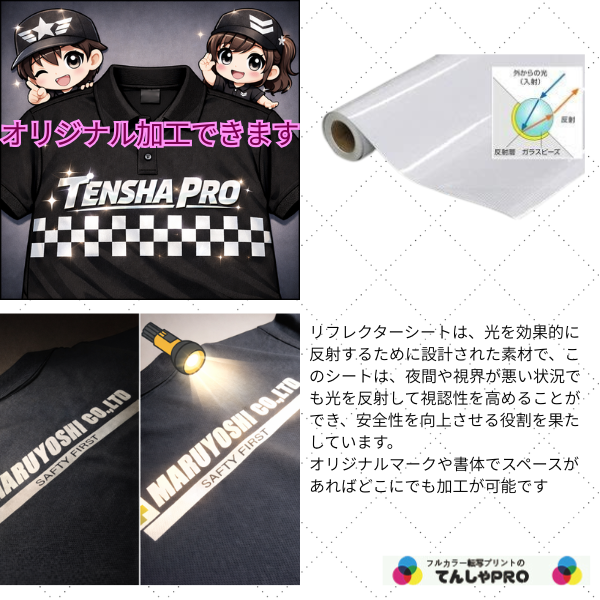 夜間や視界が悪い状況でも光を反射して視認性を高めることができ、安全性を向上させる役割を果たしています。