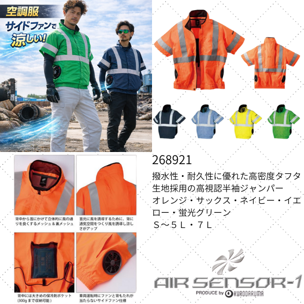 撥水性・耐久性に優れた高密度タフタ生地採用の高視認半袖ジャンパー