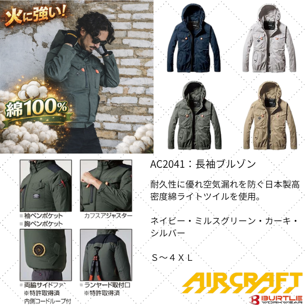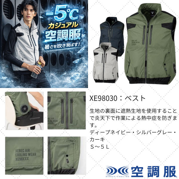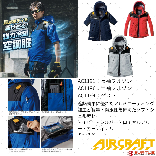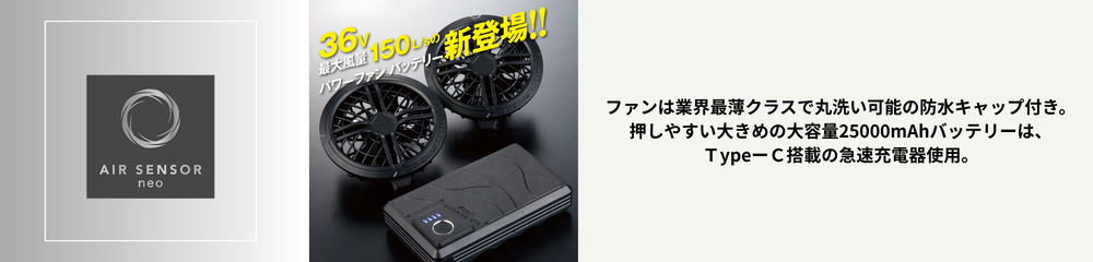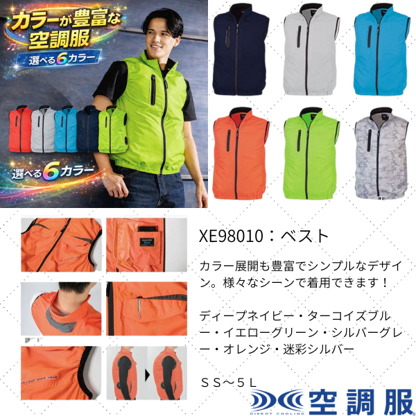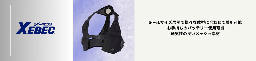 S~6Lまでの8サイズ展開で様々な体系に着用可能 お手持ちのバッテリー使用可能 通気性の良いメッシュ素材