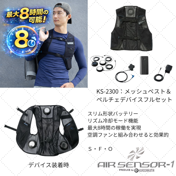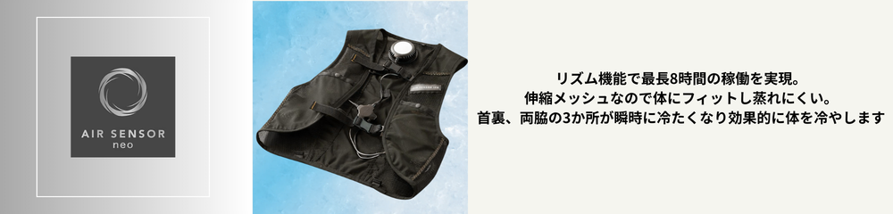 スリム形状バッテリー リズム冷却モード機能 最大8時間の稼働を実現 空調ファンと組み合わせると効果的