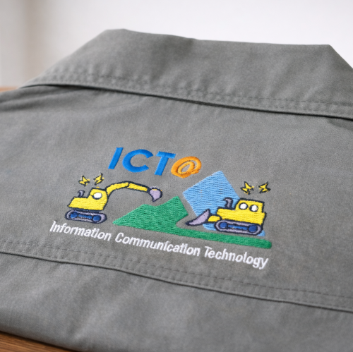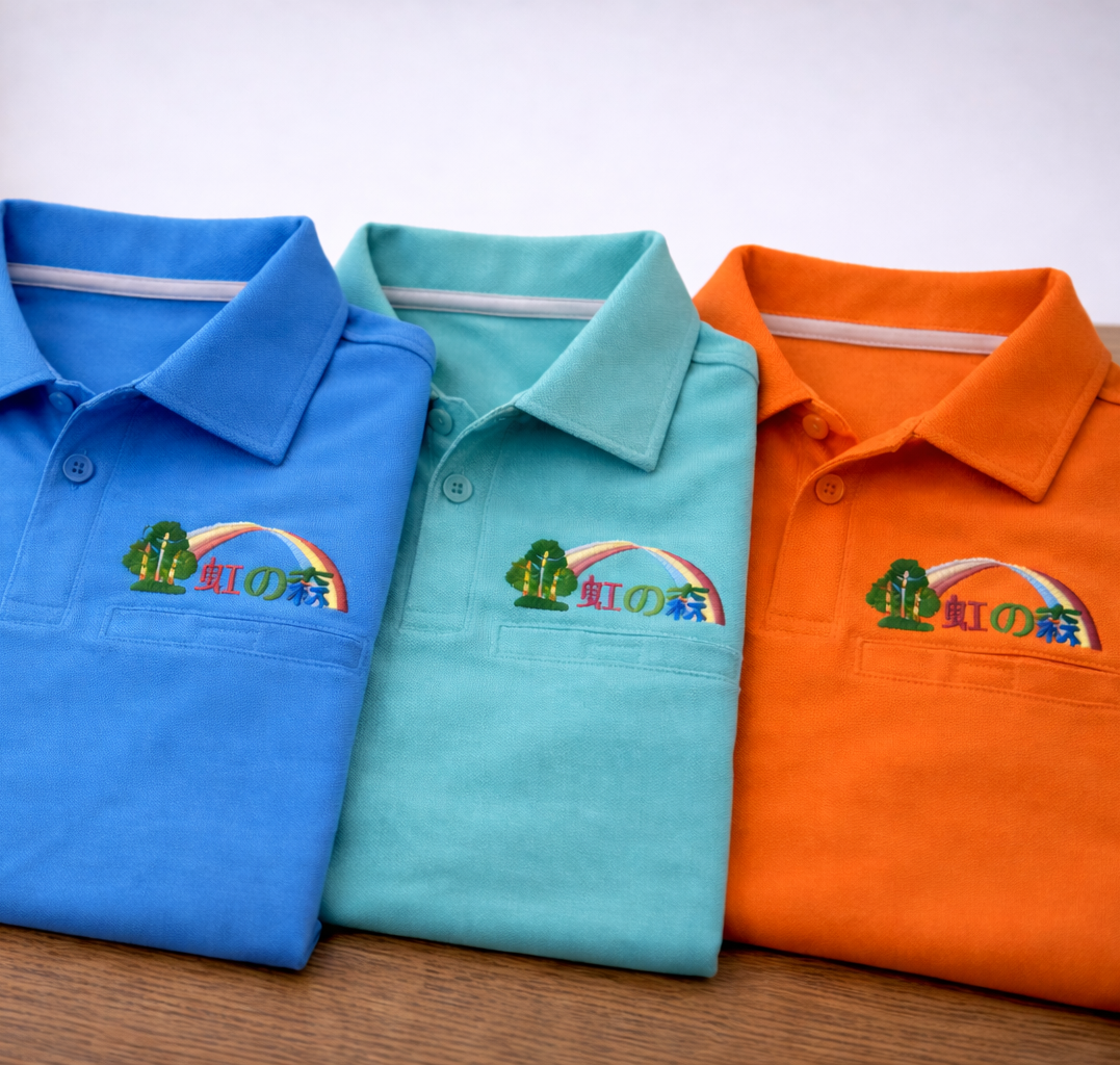 プリント加工より耐久性もあり、糸の光沢によって見た目も華やかになります。10色までのカラーも一気に刺繍します。