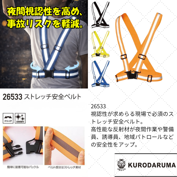 視認性が求めらる現場で必須のストレッチ安全ベルト。