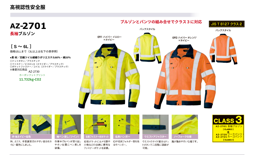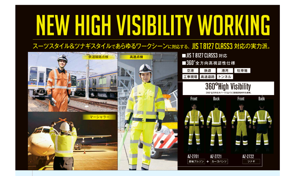 JIS規格をクリアする制電素材採用。背・腕の反射テープで安全性アップ。